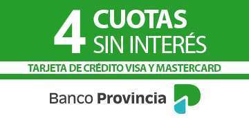 4 cuotas sin interés y 25% de descuento* para compras realizadas con las tarjetas de crédito VISA y/o MASTERCARD del BANCO PROVINCIA.
